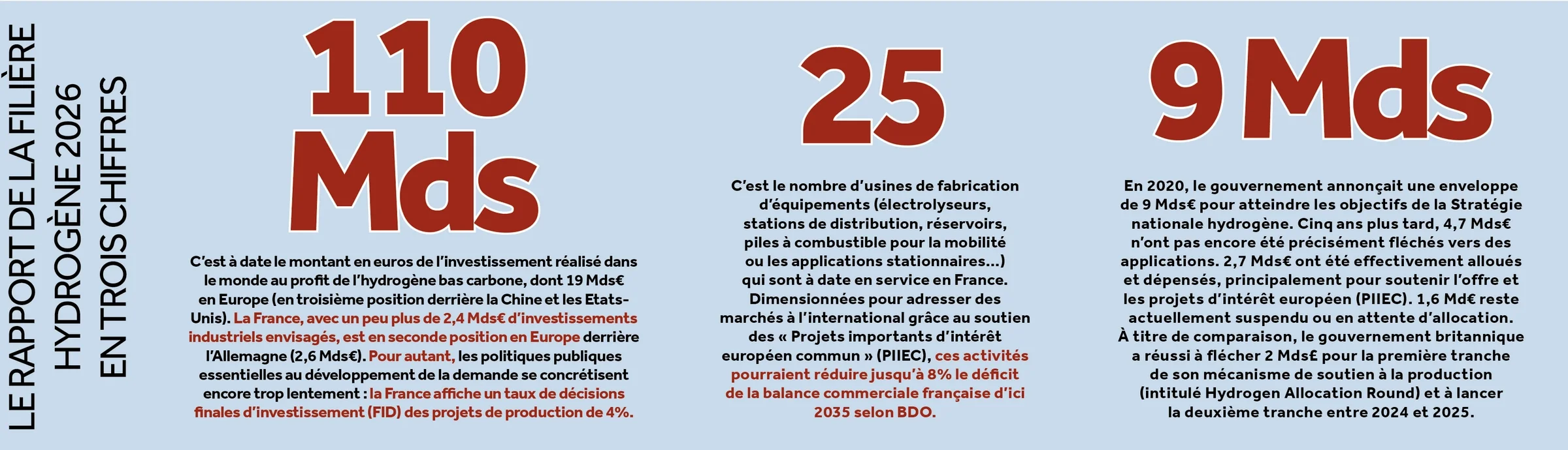 Il était l’élu, celui qui allait réconcilier réindustrialisation, décarbonation et souveraineté énergétique. En 2020, la France lui consacrait une ambitieuse Stratégie nationale hydrogène (SNH) de 9 Mds€, intégrant à la fois la maîtrise d’une nouvelle chaîne de valeur industrielle de l’amont à l’aval, et le déploiement de projets de production domestique d’hydrogène décarboné pour des usages dans la mobilité et dans l’industrie. Cinq ans plus tard, le constat est amer, l’hydrogène ne fait plus vraiment d’étincelles : en Bourgogne Franche-Comté, des champions sont en déroute, comme la gigafactory de McPhy qui, sur les terres belfortaines, a cessé ses activités, ses actifs ayant été repris à la barre du tribunal, à l’été 2025, par son concurrent belge John Cockerill.