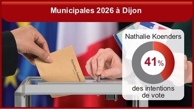 Nathalie Koenders, soutenue par le PS, le MoDem et Génération Écologie recueillerait 41 % des intentions de vote de Dijonnais aux municipales, selon une enquête OpinionWay. Elle distance nettement ses deux principaux concurrents, Emmanuel Bichot (LR) et Thierry Coudert (RN-UDR), qui obtiennent tous deux 17 %. L’avance de Nathalie Koenders se confirme dans l’hypothèse d’une triangulaire au second tour, avec 57 % des suffrages exprimés, avec un report de 35 % des voix provenant des électeurs de LFI du premier tour. Face à elle, Emmanuel Bichot obtiendrait 22 % des voix et Thierry Coudert 21 %. Cette étude repose sur un échantillon de 607 personnes inscrites sur les listes électorales à Dijon, interrogées du 6 au 12 janvier 2026. Les résultats comportent une marge d’incertitude comprise entre 1,4 et 4,8 points.
