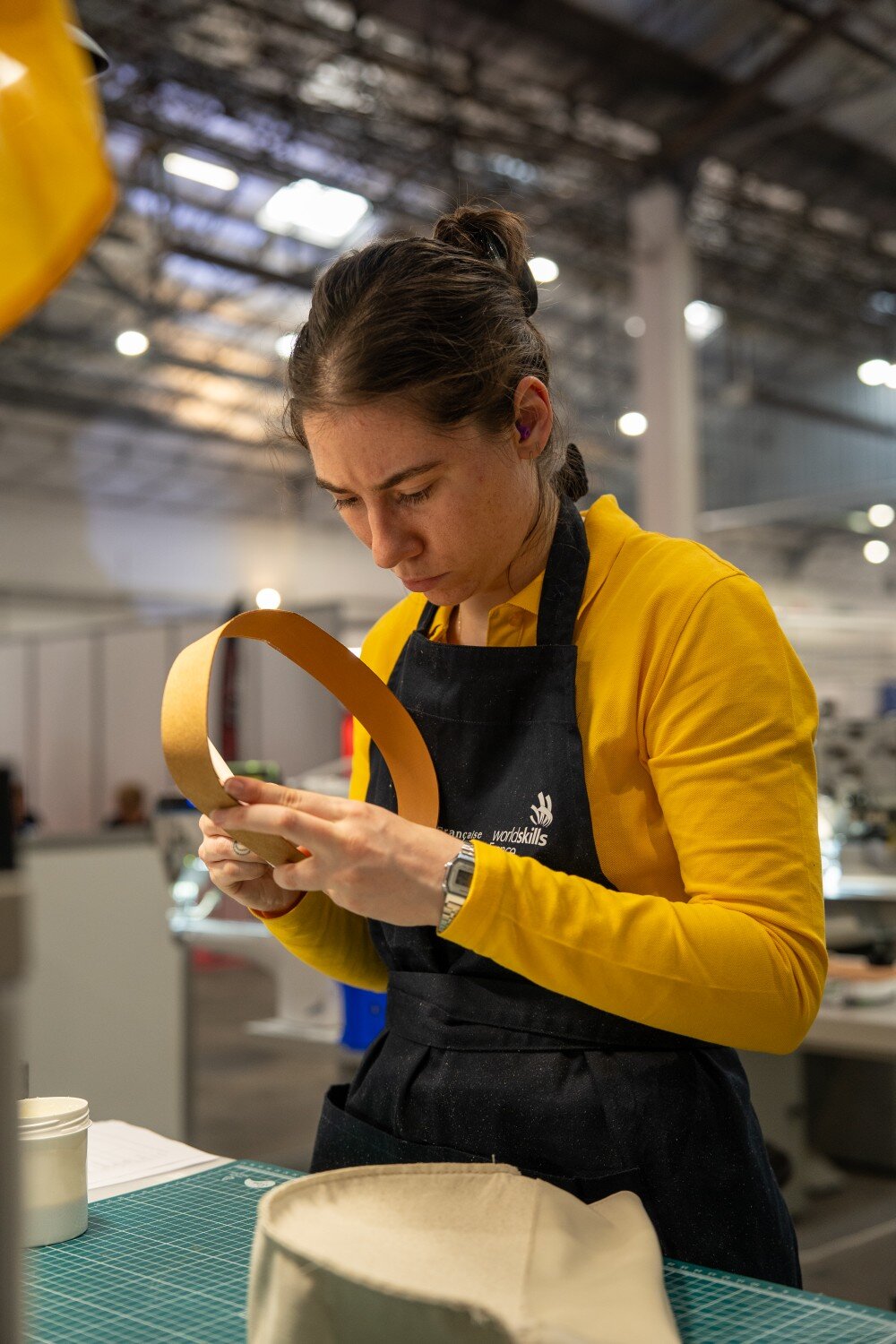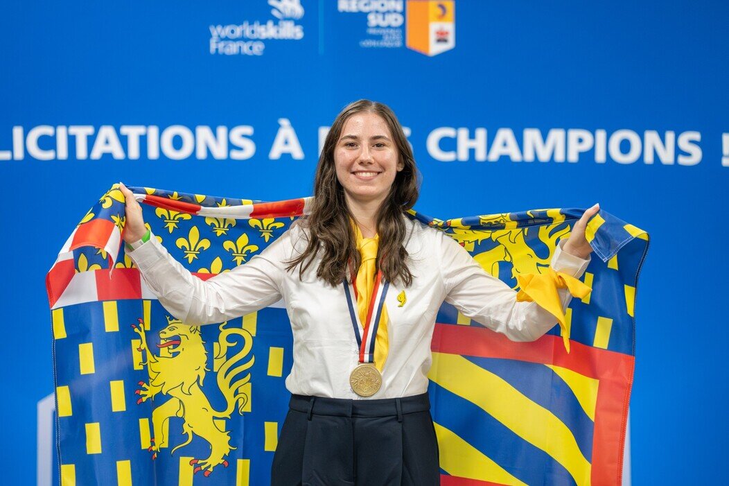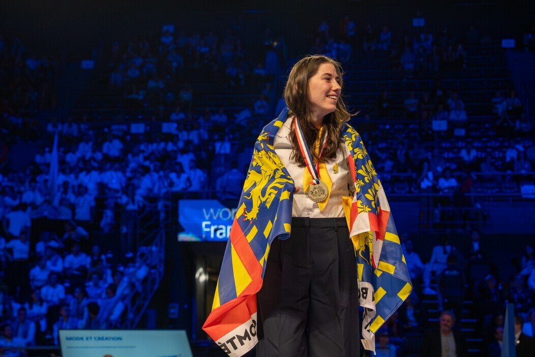 Pendant la formation, un responsable pédagogique présente les WordSkills aux six élèves de la promotion. En 2023, la maroquinerie fait alors son entrée dans la compétition pour la première fois. Maude Vienet y participe une première fois à l’échelle régionale et décroche le bronze à Dijon. « Le Centre technique du cuir, CTC, et la Fédération française de la maroquinerie avaient demandé à rejoindre l’évènement pour gagner en visibilité. » Après l’obtention de sa certification de fabricant maroquinier d’art, la jeune femme rejoint le BTS Métiers de la mode, de la chaussure et de la maroquinerie, toujours au sein du CFA du Pays de Montbéliard, désormais baptisé l’IFAC. Elle suivra ce cursus jusqu’en juillet 2026. En parallèle, elle a participé de nouveau aux épreuves régionales des WorldSkills qui se tenaient en mars 2025 sur le salon des métiers de Dijon. Cette fois elle décroche l’or et rejoint l’équipe de Bourgogne Franche-Comté pour participer aux épreuves nationales au forum des métiers de Marseille en octobre 2025.