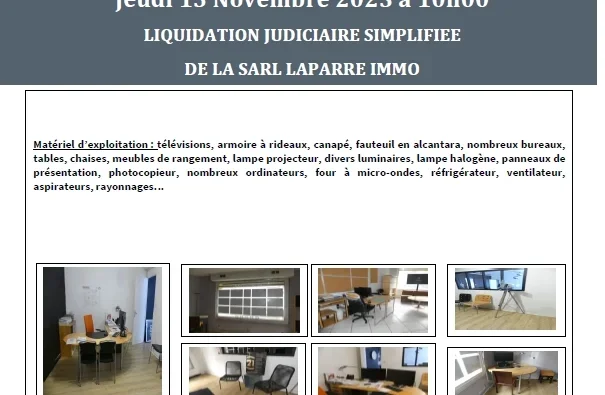 Matériel d’exploitation (télévisions, armoire à rideaux, canapé, fauteuil en alcantara, nombreux bureaux...)